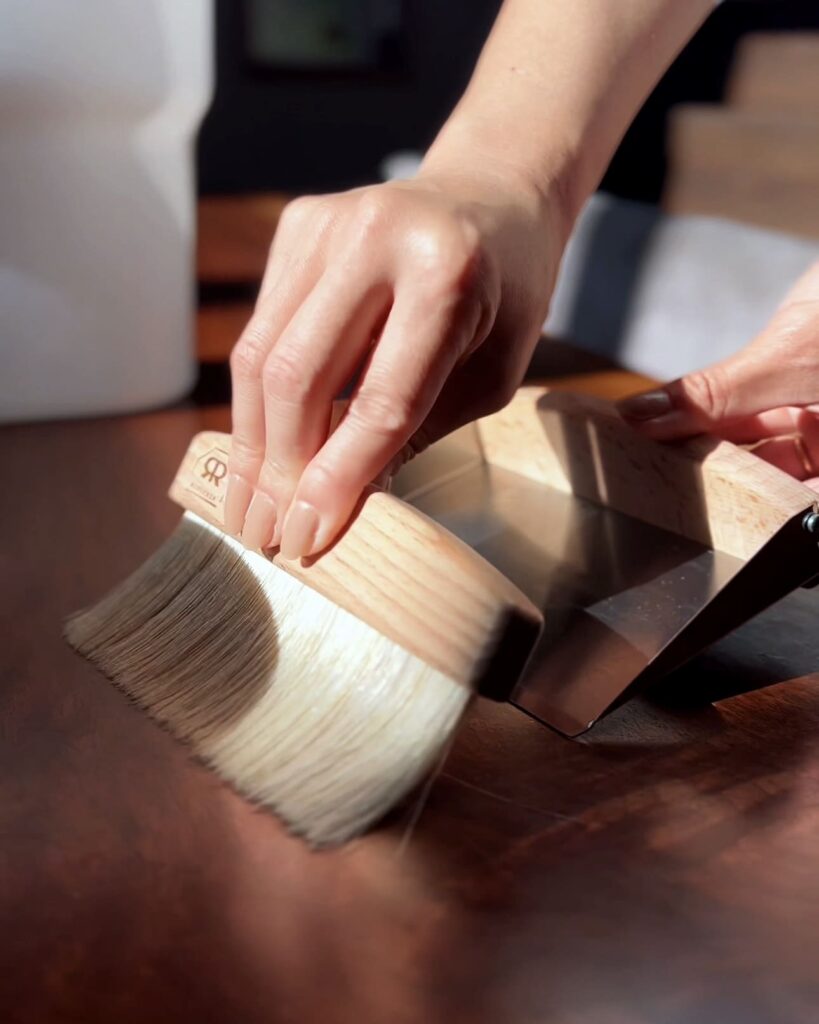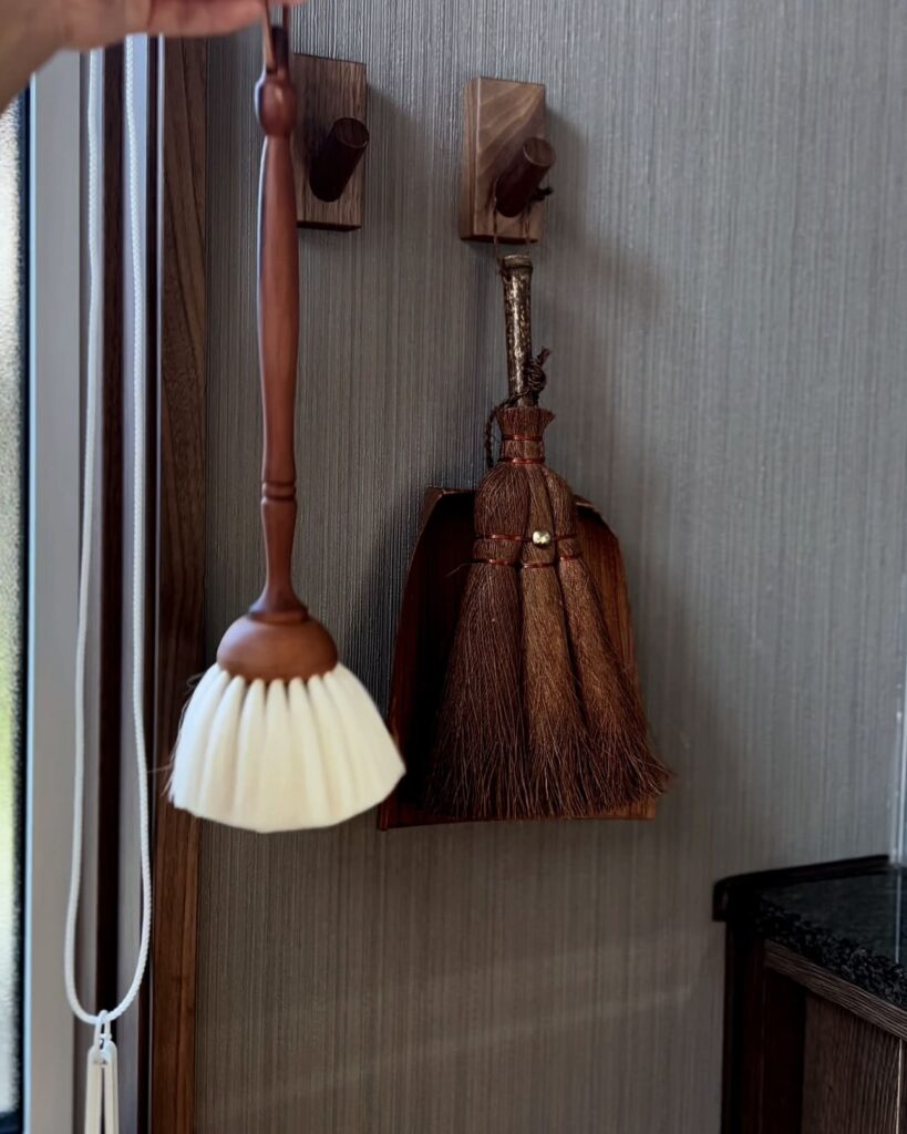 柔らかい山羊毛のブラシと、小さなちりとりがセットになったスウィーピングセット。