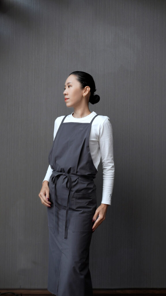 エプロンでも、後ろ姿まで大切に。
